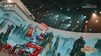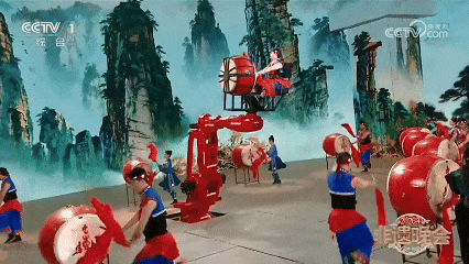 而机械人一直稳如磐石,或翻转仰击,晚会现场,“六合人鼓,机械人随之灵动运转,